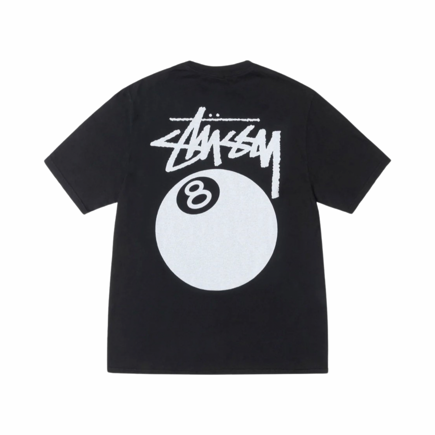 Das Stussy 8 Ball Tee kommt mit einem kleinen Weißen Frontprint auf der Brust, basierend auf einer Schwarzen Basis. Über den ganzen Rücken zieht sich ein großes weißes 8 Ball Backprint mit dem bekannten Stüssy Schriftzug zwischen den Schulterblättern.